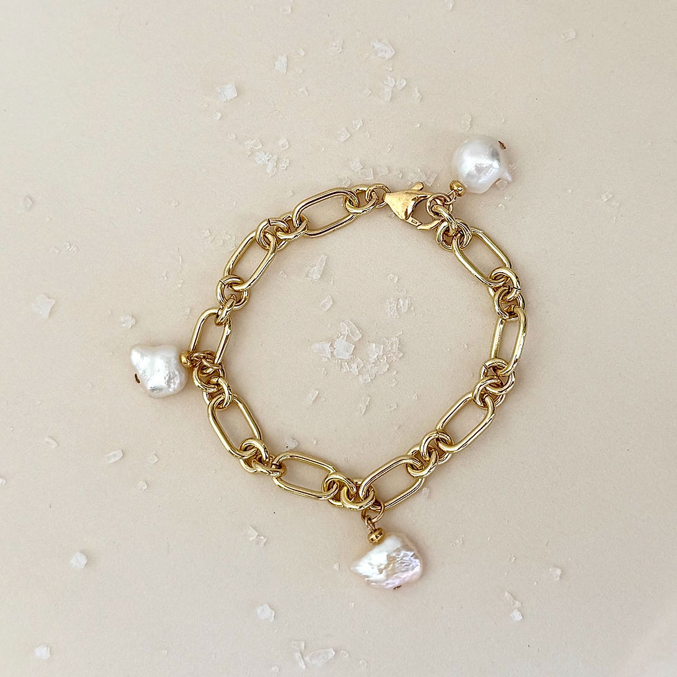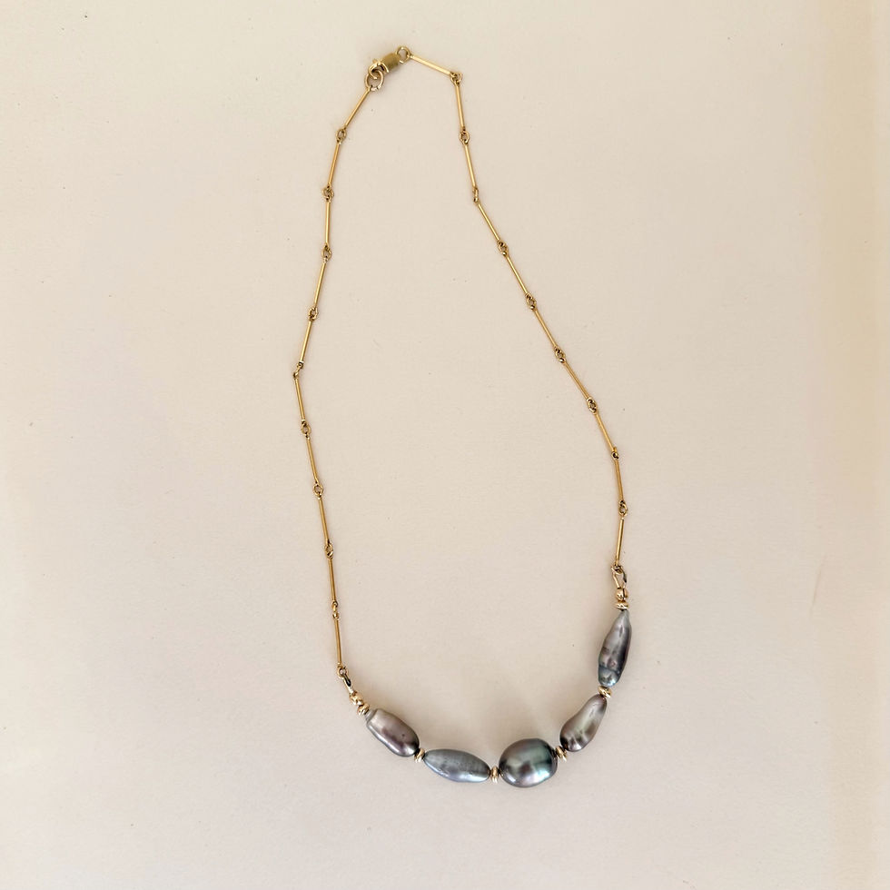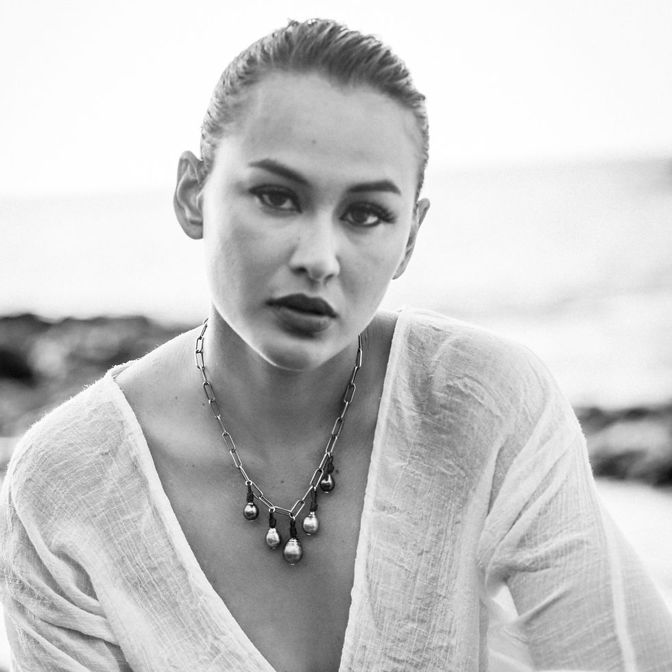 This is the full collection—necklaces, bracelets, and earrings handmade with pearls chosen for their natural character, texture, and light.
